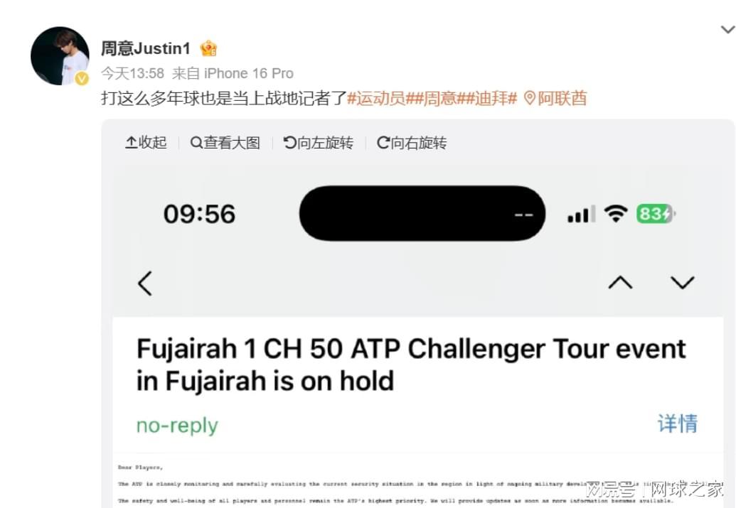 乐鱼app-41名ATP人员被困迪拜梅总打趣来场闭门赛,周意发文称成战地记者